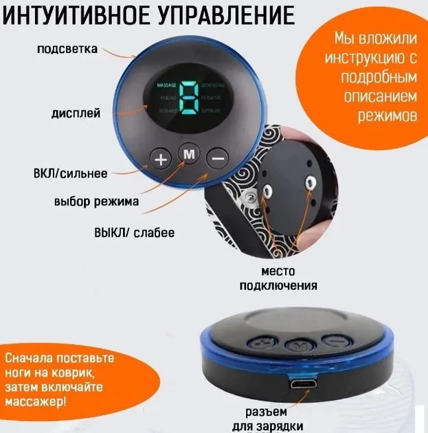 ✅ Впливає на ноги за допомогою коротких електричних масажних імпульсів і допомагає позбутися болю в м'язах і суглобах.