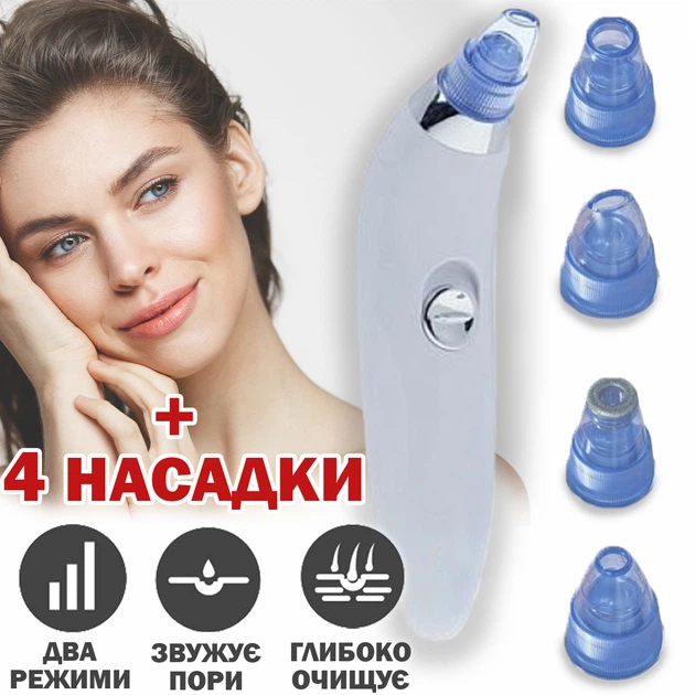 Являє собою вакуумний очисник пор для обличчя, який призначений для видалення чорних цяток, бруду та інших забруднень із пор шкіри. Цей прилад працює за допомогою вакуумної технології, що створює потужний всмоктувальний ефект, що допомагає ефективно очищати пори, зменшувати їх розмір і покращувати текстуру шкіри.